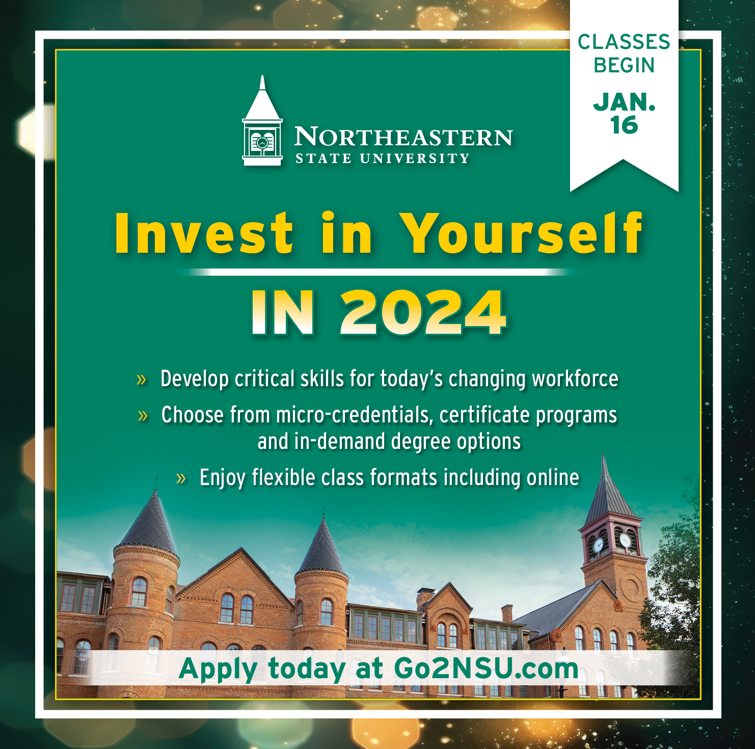 Source : law.northeastern.eduNortheastern State on X: “CLASSES BEGIN JAN. 16 Invest in Yourself