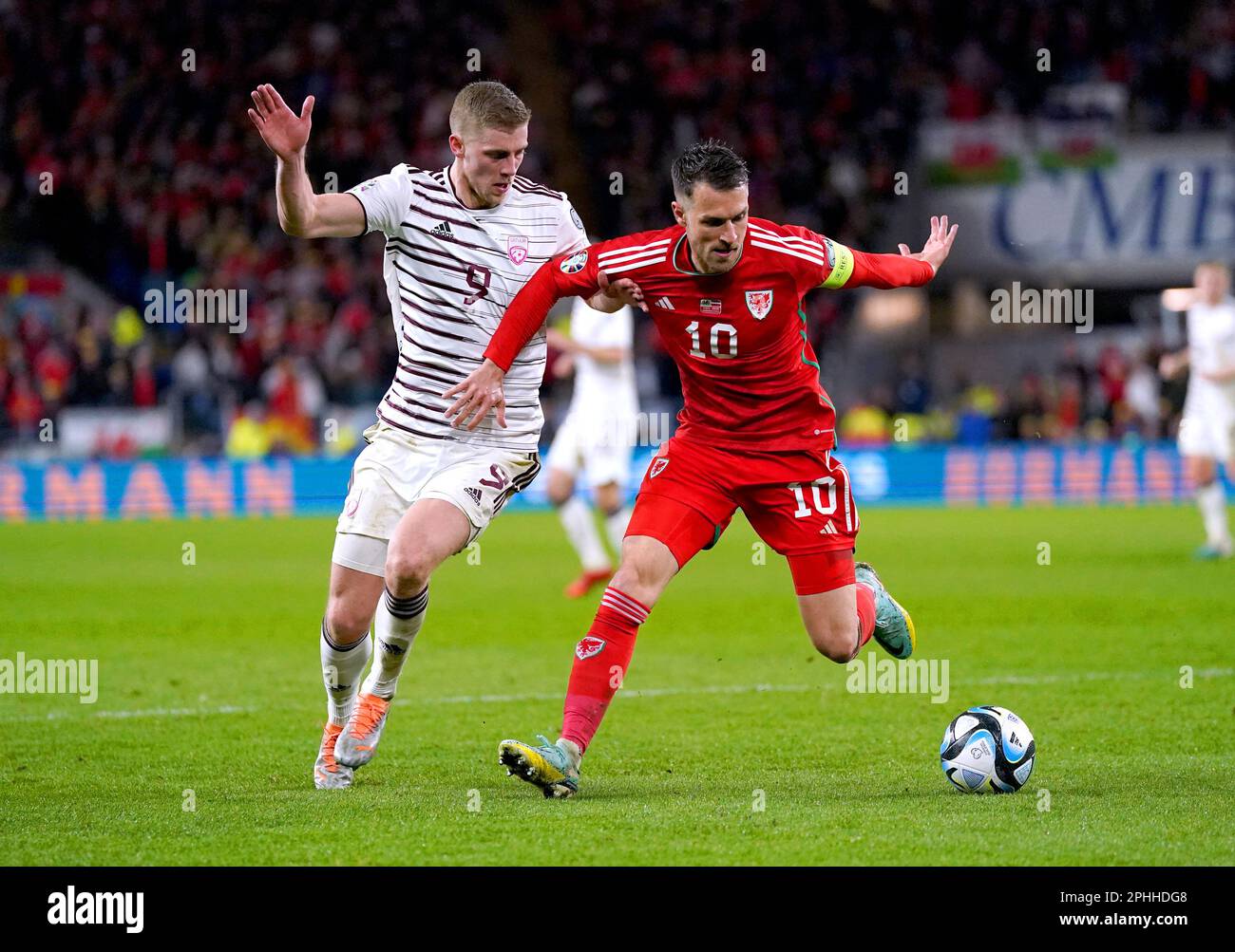 Source : m.facebook.comLatvia’s Vladislavs Gutkovskis (left) and Wales’ Aaron Ramsey