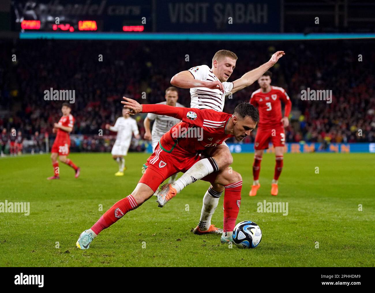 Source : www.facebook.comLatvia’s Vladislavs Gutkovskis (top) and Wales’ Aaron Ramsey