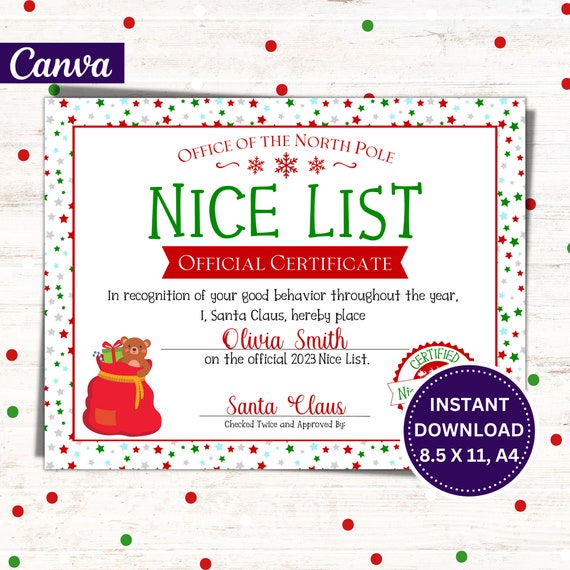 Source : www.etsy.comEditable Santa Claus Official Nice List Certificate Instant