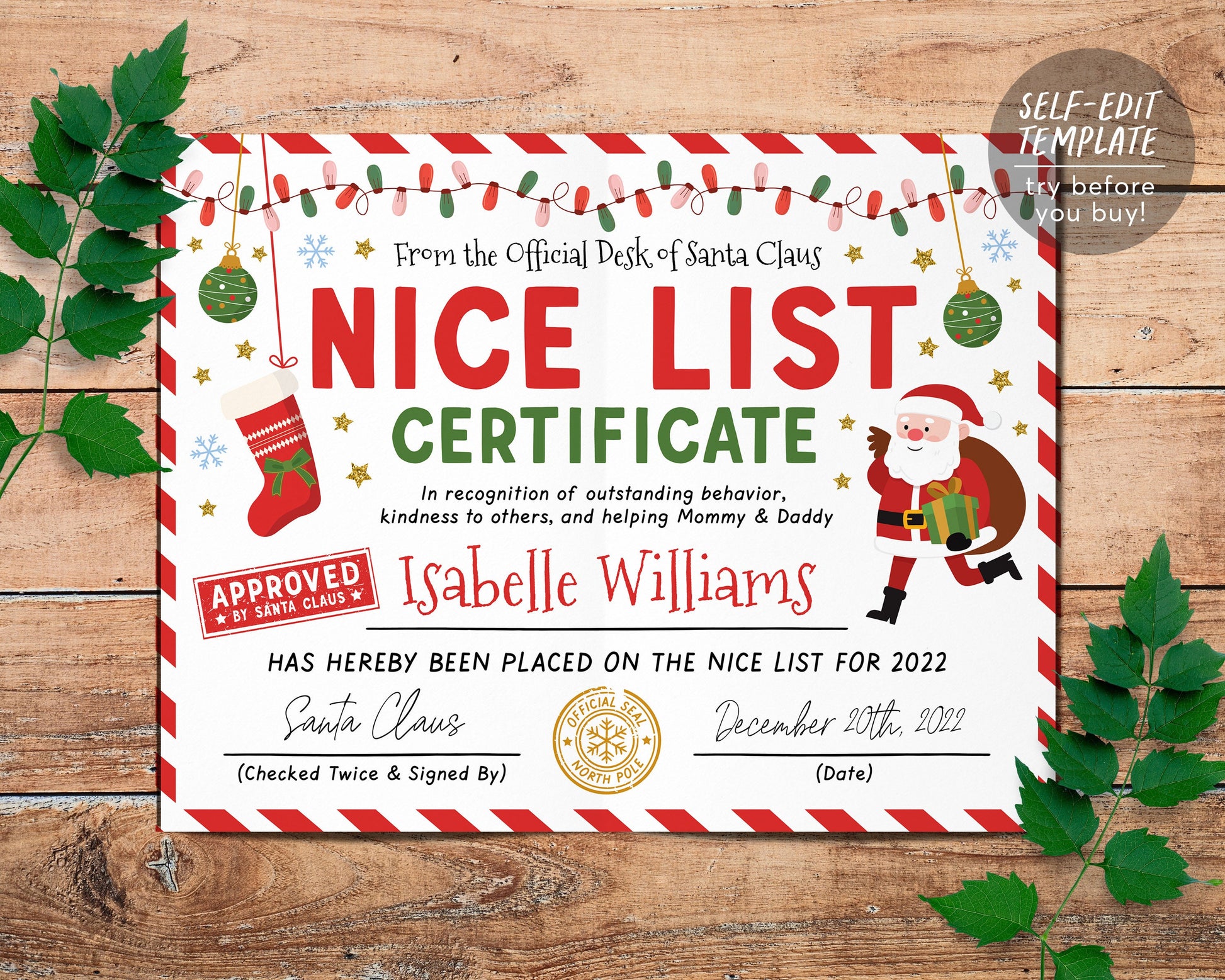 Source : www.etsy.comEditable Santa’s Nice List Certificate (INSTANT DOWNLOAD) – Chickabug